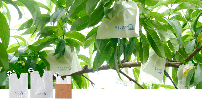 もも用かけぶくろ 商品名 サイズ 入り数 用途・特徴 ① 桃 81 140×180 mm 5000 早生種向け ② 桃 83 158×196 mm 5000 早生・中生向け ③ ピーチ 22号 撥水ミニ大 120×160 mm 2500 中晩生向け・着色向上 かけ袋の使い方 袋かけ方手順 動画 ,http://gdata.youtube.com/feeds/api/videos/AWLrLL19jqw,standard,{"playerWidth":"680","useCustom":true,"autoPlay":false,"autoLoop":true,"autoNext":false,"quality":"default","qualityName":"自動"} もも用かけぶくろ ぶどう用かけ袋 なし用かけ袋 ビワ用かけ袋 もも用かけ袋 りんご用かけ袋 柑橘用かけ袋 キウイ用かけ袋 出荷袋 農園サポートグッズ